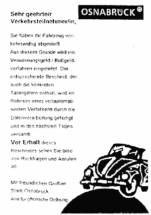 Adresse nicht ganz deutlich, sehr geehrte Stadt Osnabrück. Es wird